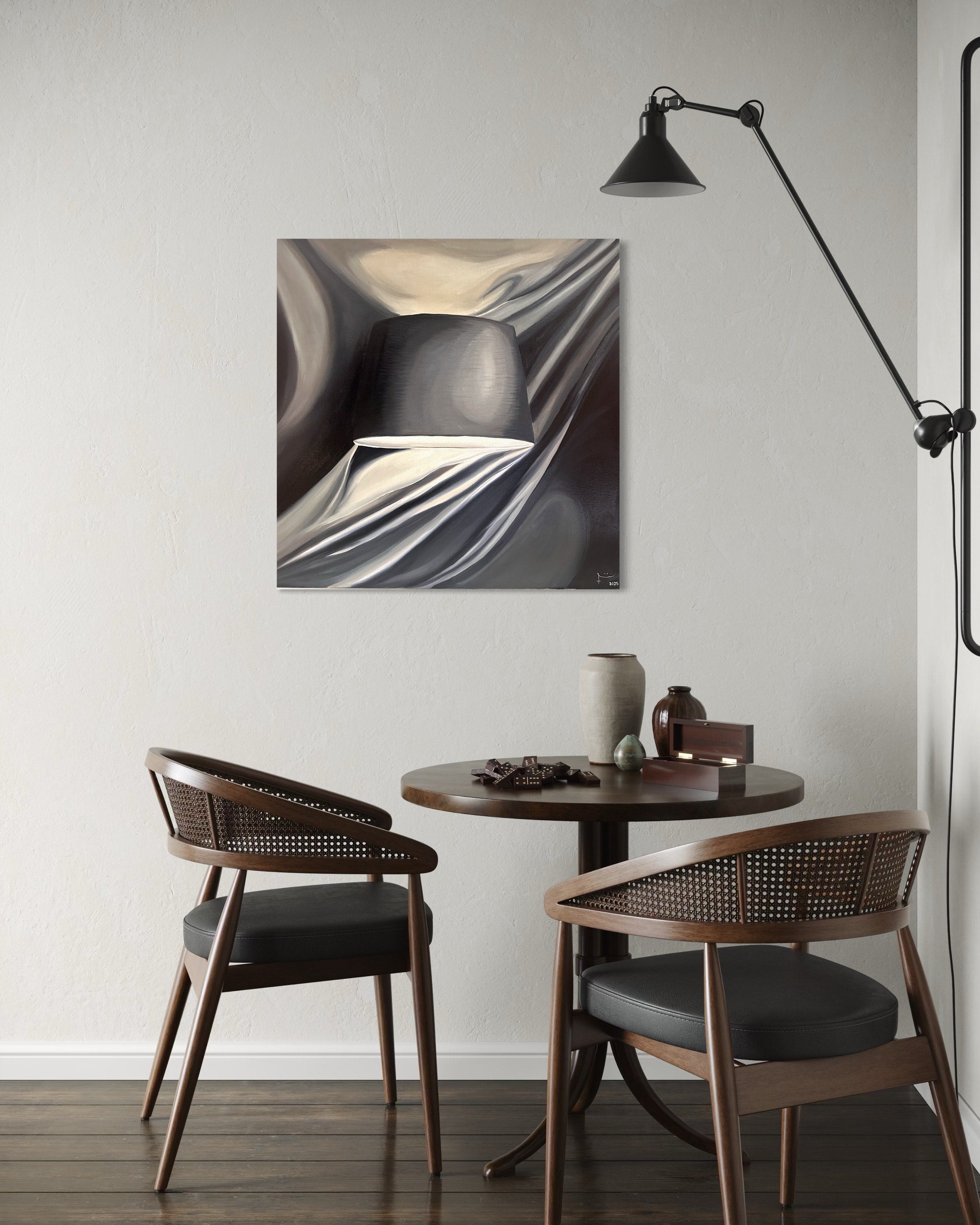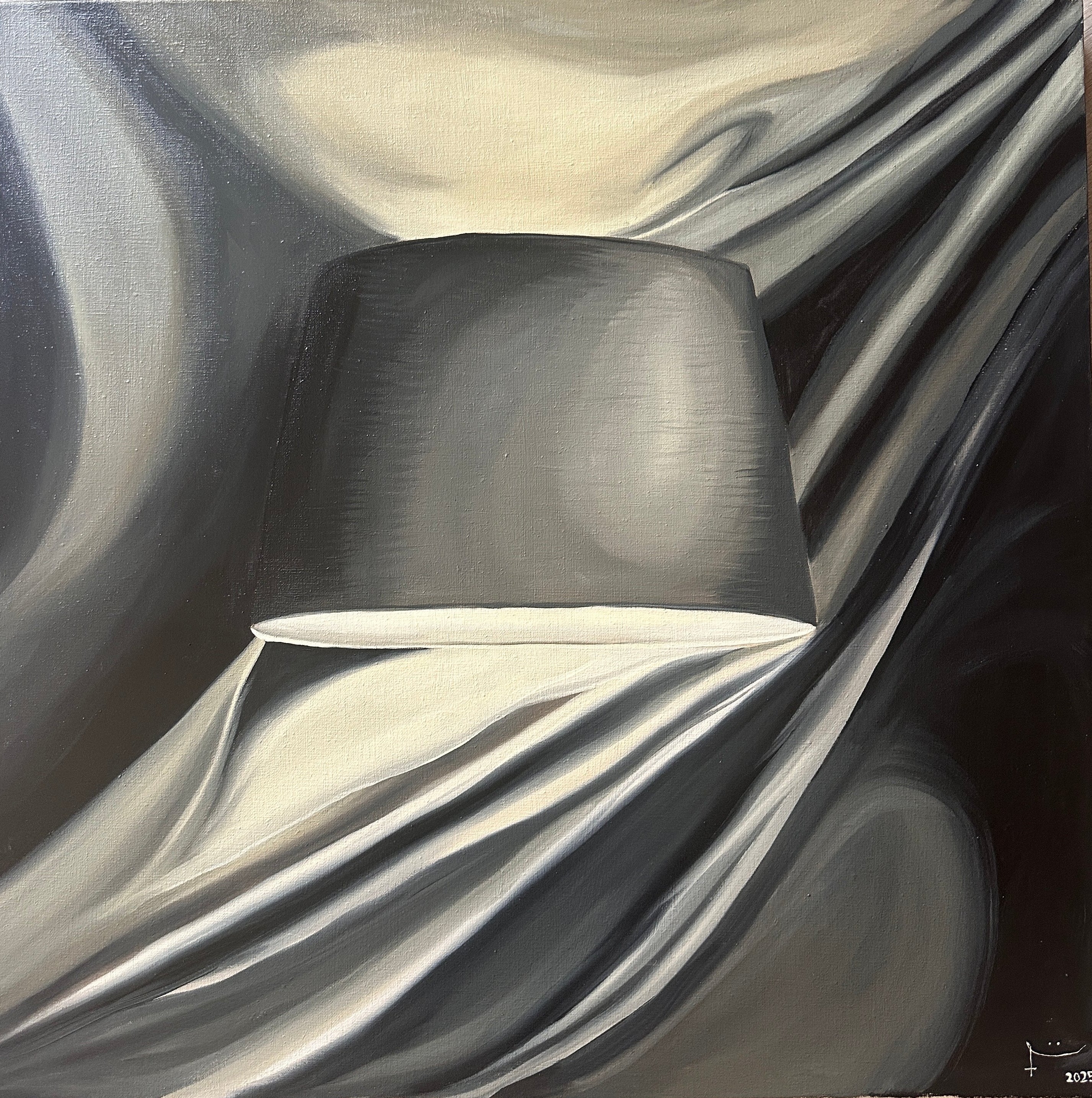 The lamp, once a fabric, now holding light becomes a symbol of what creation is. Light gives form its purpose, but when the light fades, it returns to what it always was. Fabric, stillness, silence.